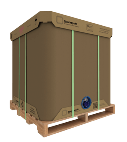 The cardboard IBC also known as SpaceKraft® is an intermediate bulk container (IBC) used to transport non-hazardous liquids worldwide. Manufactured under patented technology, SpaceKraft® is continuous sheet of paper shaping into 8 plies of A-flute corrugated. The result is a seamless container with extraordinary strength; from 20 to 37 tons of top-to-bottom compression strength.