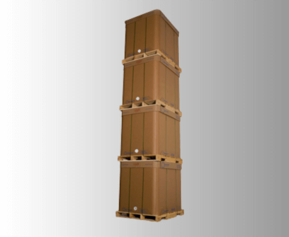 Despite being made from multilayer corrugated board, SpaceKraft IBCs are engineered for high load capacity and stability, suitable for transporting liquids safely.
